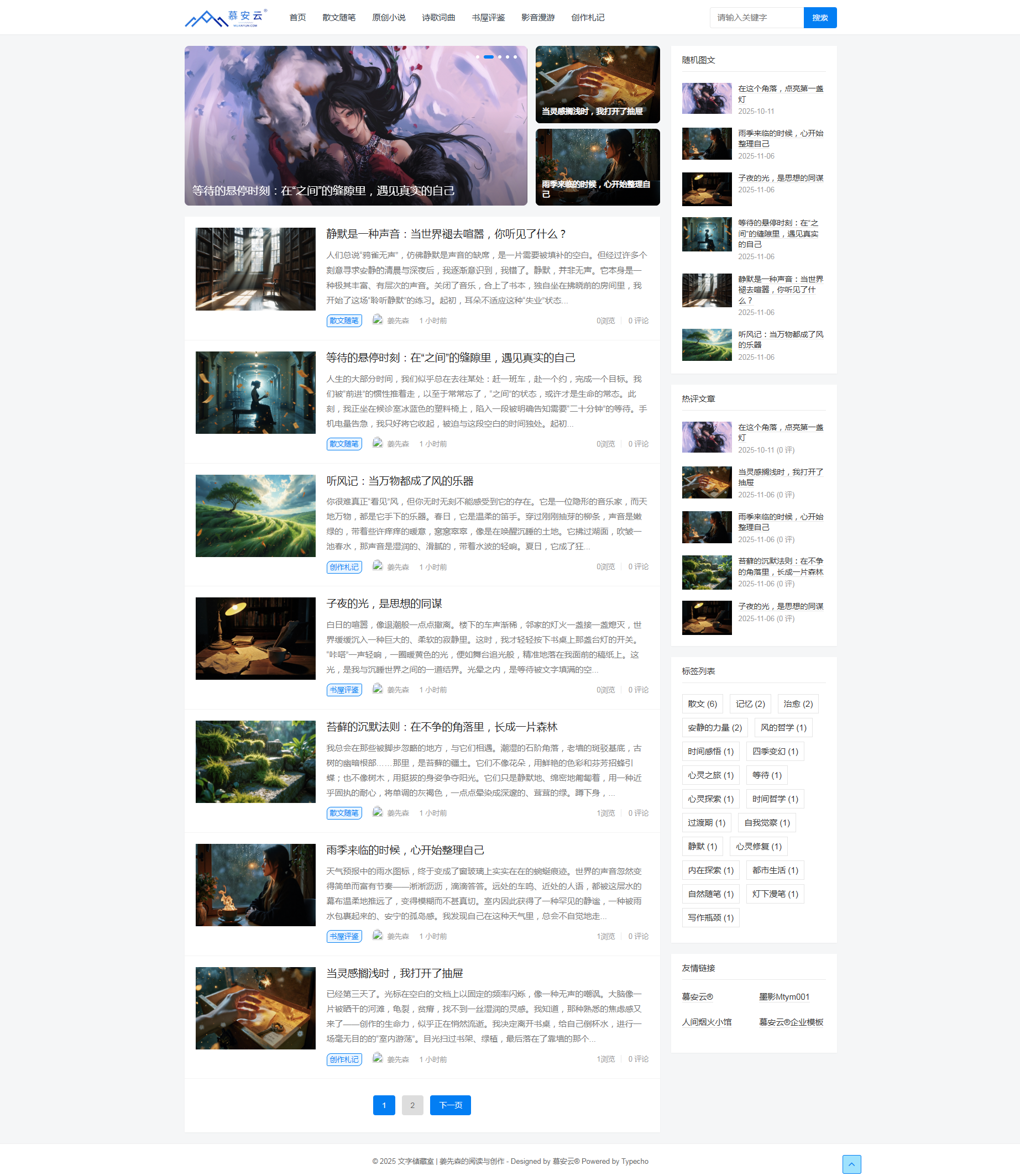 优雅的内容组织:清晰的分类导航、标签云、最新文章与随机文章列表,让您的内容宝库井然有序,易于探索。